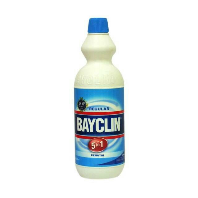 Bayclin Pemutih Regular 1000 ml / 1 liter- Cairan pemutih- Efektif membersihkan noda serta dapat membersihkan dan menghilangkan bau- Digunakan untuk memutihkan dan menghilangkan noda pada pakaian- Dapat digunakan untuk membersihkan kamar mandi dari jamur, bakteri, membersihkan lantai, membersihkan dapur dan menghilangkan bau tak sedap di dapurIsi bersih : 1000 mL / 1 l