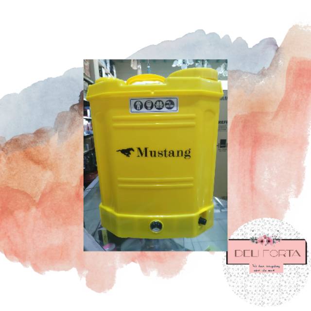 MUSTANG adalah alat/mesin yang berfungsi untuk memecah cairan, larutan atau suspensi menjadi butiran-butiran cairan (droplets) atau spray. Sprayer merupakan alat aplikator pestisida yang sangat diperlukan dalam rangka pemberantasan, pengendalian hama & penyakit tumbuhan. Battery 12V-8AHTekanan Operasi 0.2-0.45 MpaKapasitas Tangki 16 Liter Jenis Pompa ElektrikHappy shoppi