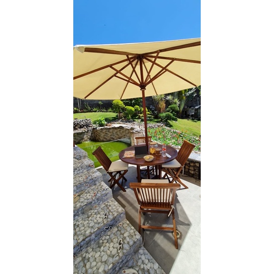 Name: Set Meja Payung Outdoor Payung Taman Payung Cafe Payung Teras Bahan Kayu Jati