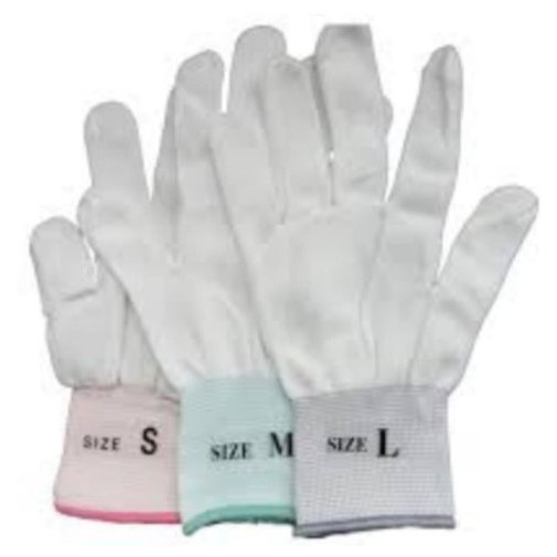 Sarung Tangan Palm Fit Nilon / Hand Glove Nylon (Safety Gloves)Weight : 30 gColor / Size : Pink ( Small ), Green ( Medium ), Gray ( Large )Material : NylonPrice: 1 pair.Nylon Synthetic 13 Gauge Palm Fit - Safety Gl