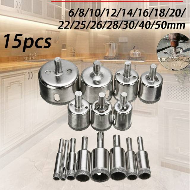 Distributor Perlengkapan di Kabupaten Badung Mata Bor Diamond Coated Hole Saw Drill Bit 6mm-50mm Isi 15 Pcs - Silver dari Mochholil027 Kota Surabaya