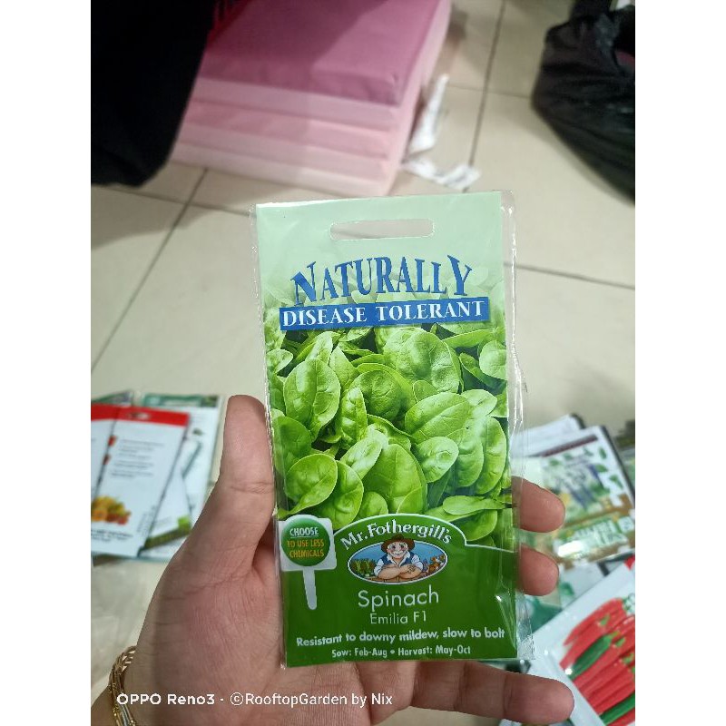 isi per kemasan plastik klip 3 benih, expired date tertera di slide foto ke dua.Nama: Spinach Emilia F1 Nama ilmiah: Spinacea oleracea Exp : 2022 Kelas tanaman: Annual Kebutuhan sinar matahari: Partial Shade/Sebagian Deskripsi varietas: Daun yang berukuran medium dengan warna hijau cerah. Lebih cepat tumbuh dan daunnya lebih cepat dipanen dibandingkan varian bayam lainnya. Kaya akan vitamin A, Zat besi dan nutrisi lainnya Tahan terhadap serangan jamur yang dapat menyebabkan downy mildew atau penyakit daun yang nampak seperti bercak-bercak putih. Rasa bayam lebih enak jika ditanam secara or