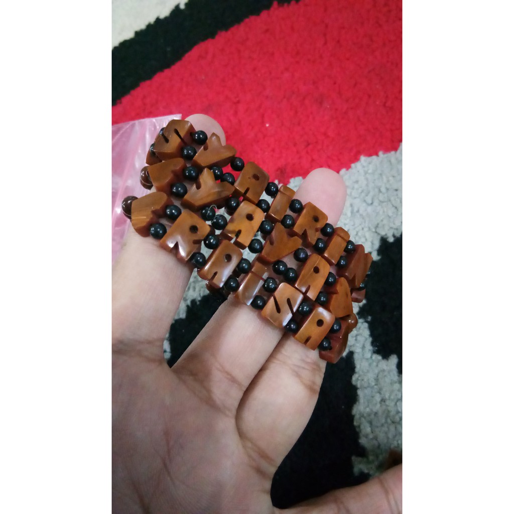gelang cantik yang bisa di ukir dengan nama kita nama pasangan keluarga cocok buat hadiah . terbuat dari bahankayu kaukah. cara pemesanan silahkan chat dulu kirim nama dulu . kalau sdh selesai baru chekout. persyaratan harus sabar menunggu krna semua handmade proses pembuatan kerajinan tangan dan panjang huruf maksimal 10 huruf untuk satu gelangterimakasih semoga berkah s