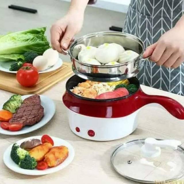 PANCI ELEKTRIK CANTUMKAN WARNA CADANGAN SAAT ORDERCARA MEMASAK JAMAN NOW SIMPLE DAN MUDAH BUANGET ,TINGGAL COLOK AJEPanci Elektrik serbaguna lapisan keramikberat 1an : 1300gramtermasuk steamer/kukusan stainless dan tutup kaca*** Nggak ada lagi kata repot saat memasak dengan menggunakan Panci Elektrik. Panci ini bisa kamu gunakan dengan menggunakan aliran listrik, tinggal colok saja kabel Panci Elektrik ke steker dan nyalakan, alat ini siap kamu pakai. Panci Elektrik bisa kamu gunakan untuk memanaskan masakan berkuah misalnya sup.Buat kamu yang sedang traveling, alat masak yang satu ini bisa jadi alternatif kamu untuk menghangatkan makanan tanpa harus menggunakan kompor. Panci Elektrik mudah untuk dibawa kemana saja dan juga terbuat dari bahan berkualitas.Tegangan : 220 V / 50 HzPower : 225-450watt1.2