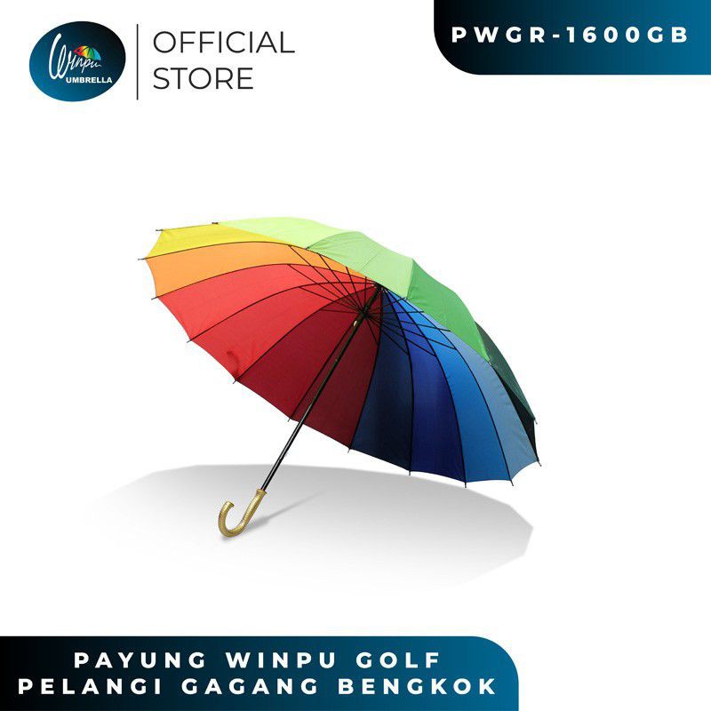 detail payung:diameter --> 150cmtipe --> payung golf/jumbowarna handle --> pelangi/rainbowbahan kain --> 100% polye