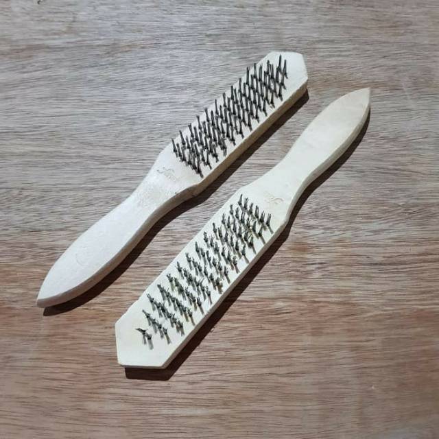 Sikat Kawat 6 baris gagang kayu untuk membersihkan karat