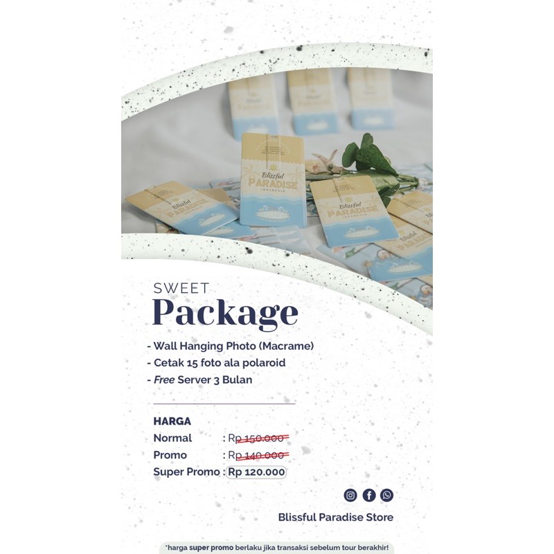 SUPER PROMO!! SWEET PACKAGE Blissful Paradise Mercandise Macrame dengan 9 taliDekorasi gantung dinding yang unik ditambah dengan foto-foto terbaik kamu, pastinya bakalan bikin ruangan kamu jadi lebih keceSudah termasuk print Foto ala Polaroid (max 15 foto)*NOTE*Upload foto kamu ke dalam 1 folder di GOOGLE DRIVE dan kirimkan link nya melalui chat kepada kami.Untuk hasil foto yang lebih baik, disarankan memberikan foto dengan resolusi yang tin